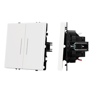 Механизм выключателя света клавишный на 1 пост 2 клавиши (проходной). Цвет - белый, с Soft-Touch покрытием. Клавиша имеют активную LED подсветку - cинего свечения. Без фронтальной рамки. Уровень пылевлагозащиты IP20. Выключатель устанавливается в стандартный круглый подрозетник круглого сечения диаметром 60мм.